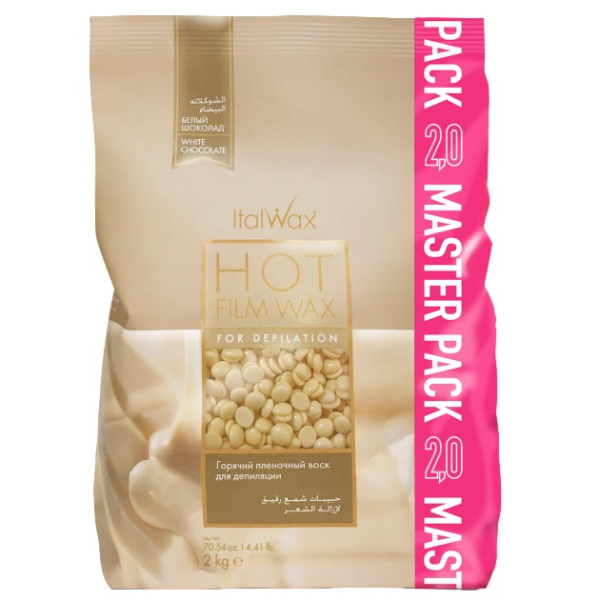 Натуральный полимерный (пленочный) воск ItalWax Белый Шоколад в гранулах средней плотности с диоксидом титана. Отличается высокой пластичностью, при этом не образует тянущихся нитей. Не оставляет на коже раздражений и покраснений. Эффективно удаляет жесткие и короткие волоски, позволяя использовать воск для интимной депиляции. Время застывания аппликации 6-7 секунд.