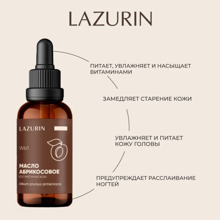 Масло абрикосовое Lazurin можно использовать, как в чистом виде, так и для сочетания с эфирными маслами. Содержит витамины Е, А, В, С и минеральные вещества. Абрикосовое масло является основой (несущим, транспортным маслом) при использовании различных эфирных масел во время массажа и косметических процедур.