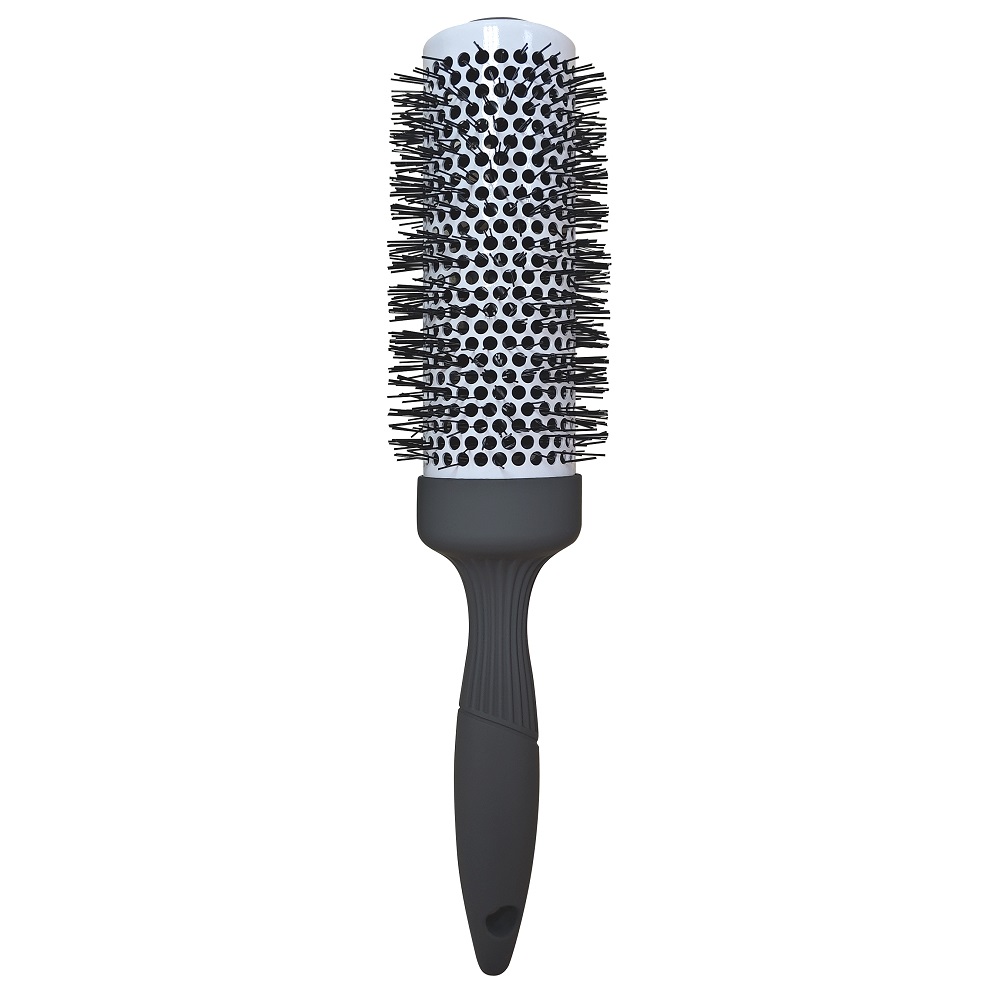 Термобрашинг позволяет быстро и бережно уложить волосы благодаря равномерному распределению тепла по металлической поверхности. Использование турмалина обеспечивает волосам блеск, эффективно снимает статическое напряжение и ускоряет процесс укладки. Щетина из термостойкого нейлона выдерживает воздействие высоких температур, а покрытие Soft Touch на ручке обеспечивает противоскользящий эффект. Легкий вес и отлично сбалансированная эргономика гарантируют максимальный комфорт при укладке.