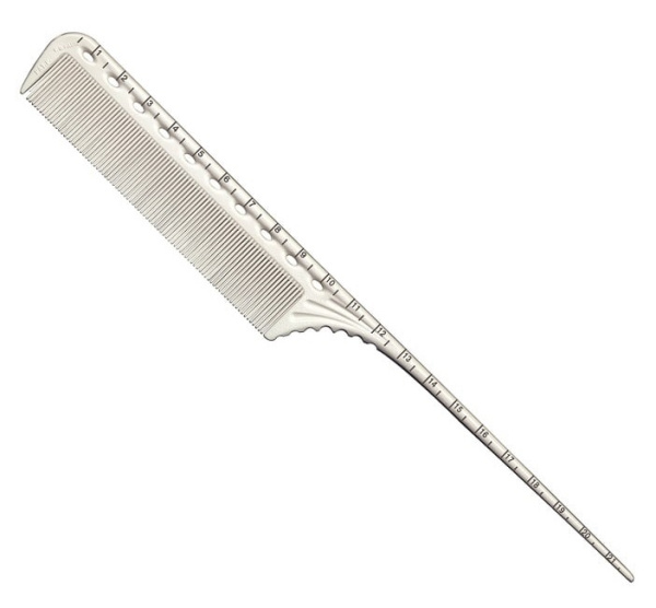 Обучающая расческа с вогнутой формой зубцов Y.S.Park YS-G2 белого цвета позволяет делать точные измерения (90 градусов). Деления нанесены на обе стороны расчески, таким образом легко измерять длину волос как со стороны мелких зубцов, так и со стороны крупных.