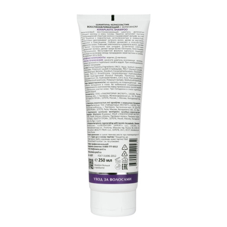 Кератиновый восстанавливающий шампунь деликатно очищает волосы и кожу головы.
