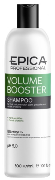 Шампунь для придания объёма с растительными пептидами и протеинами зерновых культур бережно очищает кожу головы и волосы, визуально увеличивая объем, не утяжеляя, делая их более плотными.