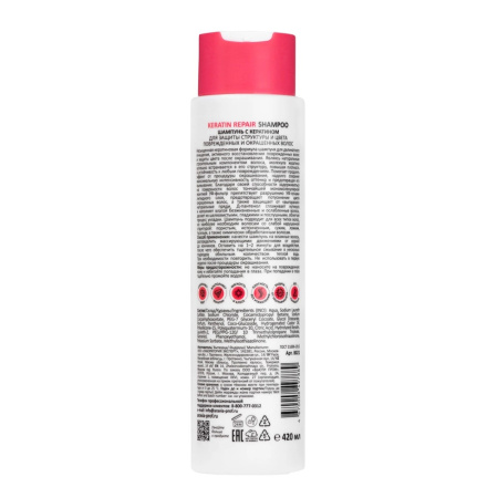 Насыщенная кератиновая формула шампуня для деликатного очищения, активного восстановления поврежденных волос и защиты цвета после окрашивания. Являясь натуральным строительным компонентом волоса, молекула кератина успешно встраивается в его глубинные слои, тем самым значительно повышая плотность и устойчивость к повреждениям и внешним раздражителям. Шампунь укрепляет волокно волоса, помогает продлить эффект от процедуры окрашивания, надолго сохраняя максимальную интенсивность цвета и предотвращая его вымывание.