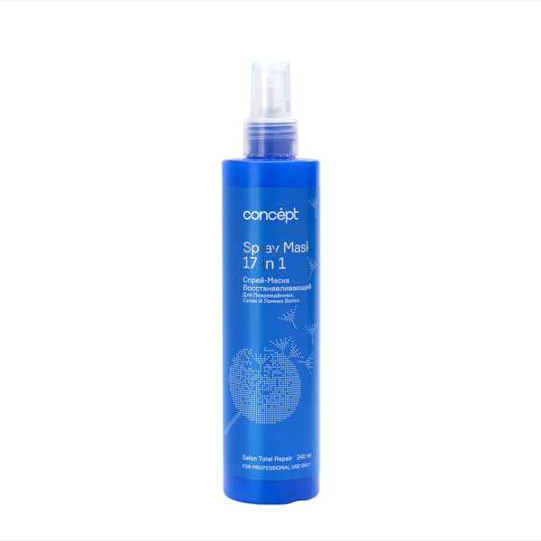 Спрей - маска обеспечивает уход за повреждёнными, сухими и ломкими волосами.