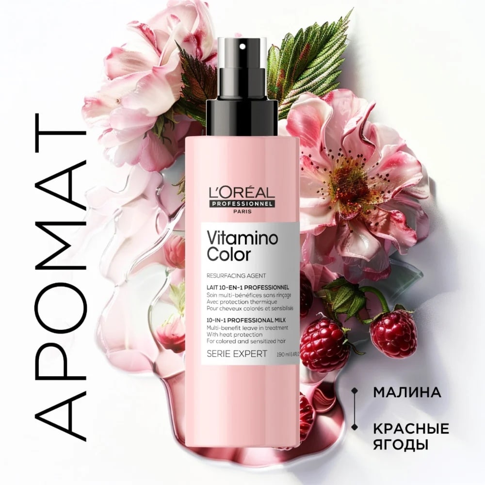 Спрей Serie Expert Vitamino Color 10 в 1 заменит несколько средств для ухода и укладки и обеспечит 10 мгновенных эффектов.