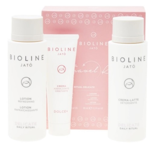 Набор включает продукты для деликатного ухода за кожей лица, шеи и декольте из линий Dolce+ и Gentle Daily Ritual.