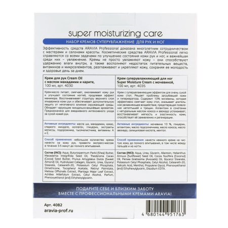 Питает, смягчает и омолаживает кожу рук, укрепляет ногти и восстанавливает структуру верхнего слоя эпидермиса. Обладает чарующим миндально-вишнёвым ароматом. Идеален для ежедневного ухода за сухими руками и защиты от внешних агрессоров, продлевая эффект маникюра. - Крем-суперувлажнитель для очень сухих стоп (100 мл)