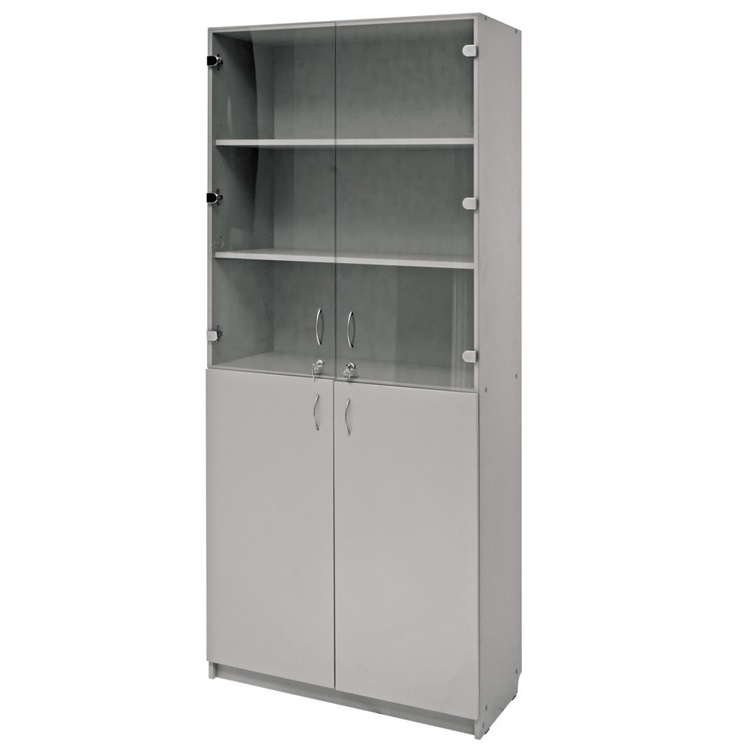 Этот стильный шкаф выполнен из высококачественного ламинированного ДСП, что обеспечивает долговечность и устойчивость к износу. Стеклянные дверцы добавляют нотку современности и позволяют легко видеть содержимое, что ускоряет поиск нужных предметов.