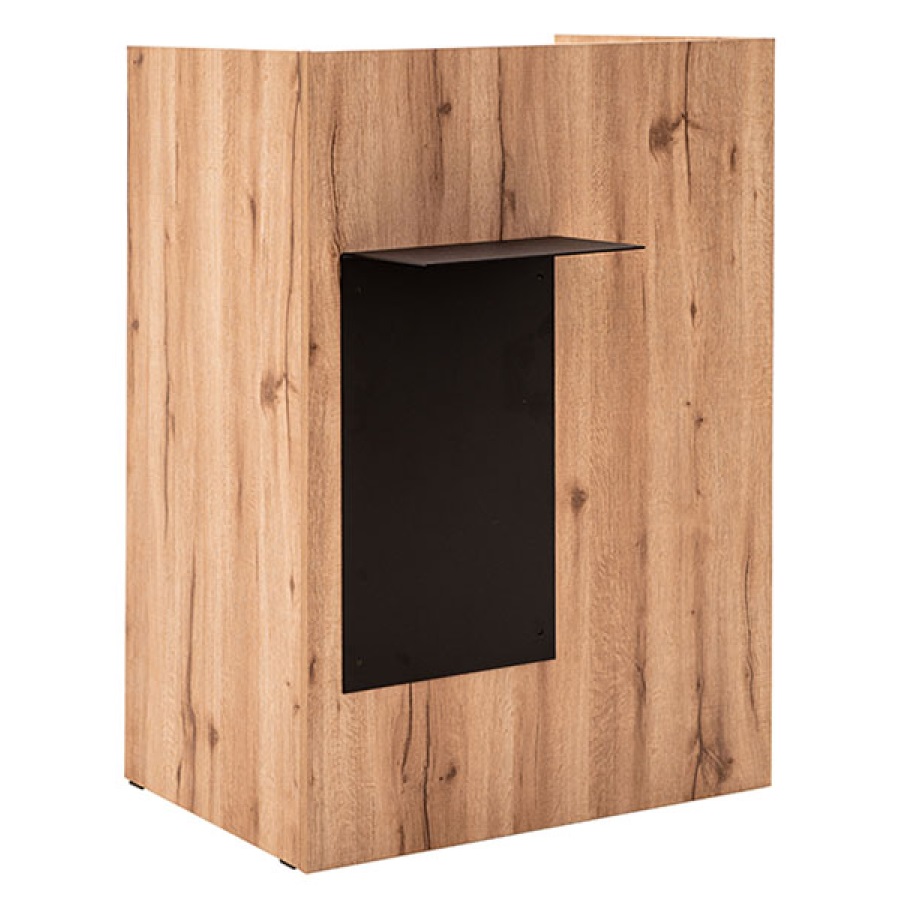 Компактность этого решения делает его идеальным для любого пространства — от просторных салонов до уютных уголков. Стильные цвета «Дуб песочный» и «Металл Черный муар» придают стойке особый шик и универсальность, легко вписываясь в любой интерьер.