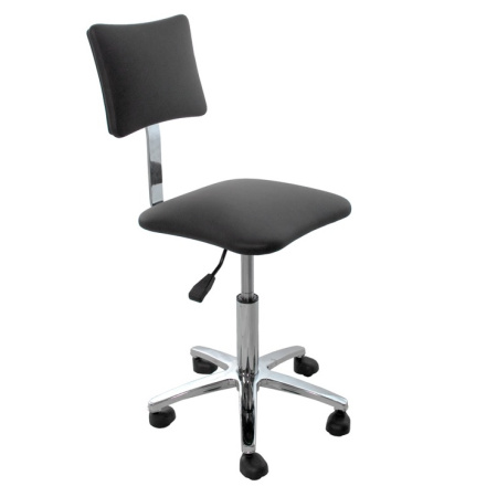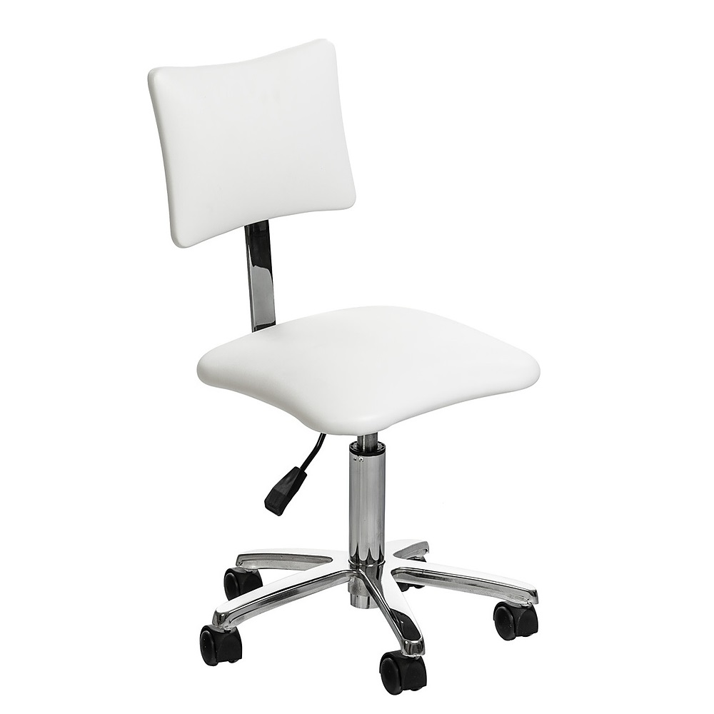 Стул классического дизайна с пневматической регулировкой высоты. Комплектация: - высокий – хромированное пятилучье с опорой для ног, - низкий – хромированное пятилучье. Базовые цвета: белый, черный. Размер (ШхГ): 400х500 мм. Диапозон изменения высоты стула (min-max): 45-56 cм.