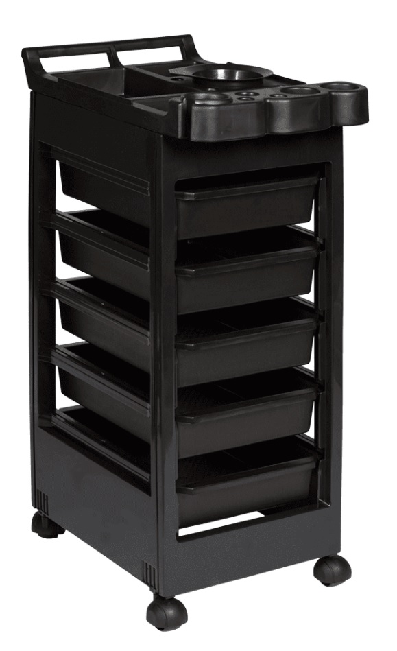 Передвижная тумба на колесах для хранения парикмахерских инструментов, средств для волос и аксессуаров.