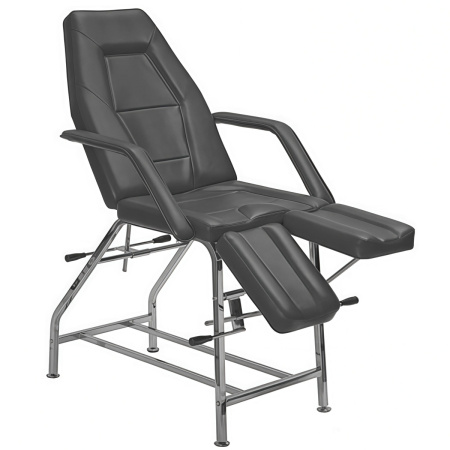 Оснащено анатомическим матрасом, который обеспечивает дополнительное удобство во время процедуры. Серый металлический каркас и съемные подлокотники делают дизайн стильным и практичным. Ножки с механической регулировкой по высоте позволяют настроить кресло под любой рост специалиста.