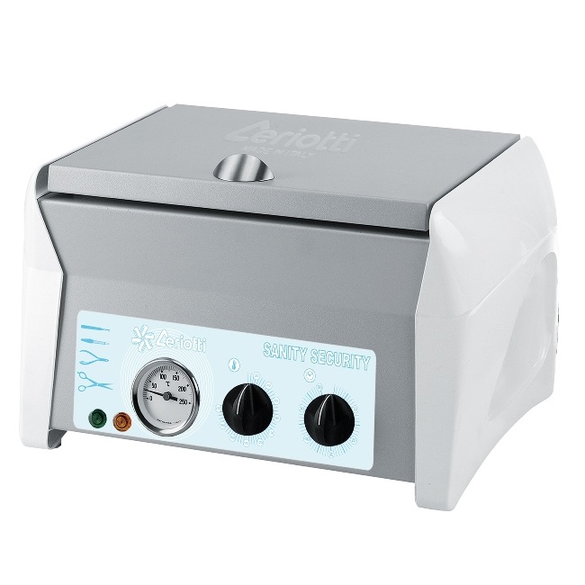 Термическая камера предназначена для обработки инструментов при температуре 240 градусов, время обработки — 30 минут. Объем камеры составляет 2,5 литра. В комплект входят таймер, терморегулятор и градусник.
