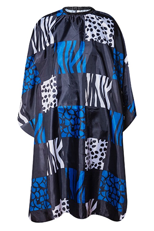 Профессиональная парикмахерская накидка для клиента с креплением воротника на липучке. Изготовлена из лёгкого синтетического материала.
